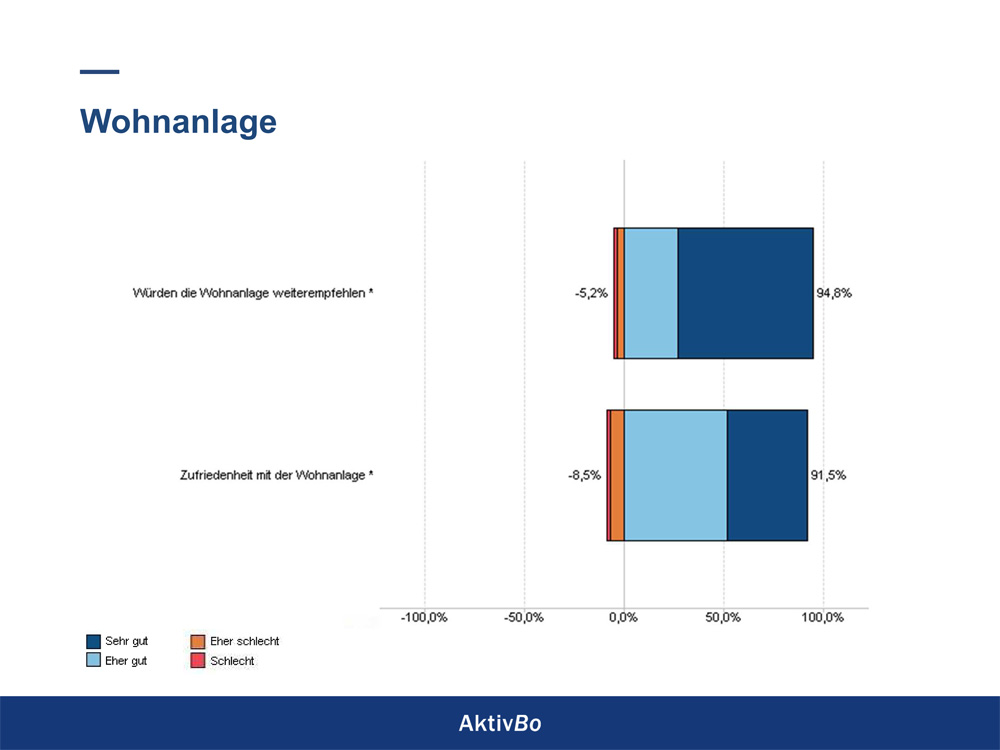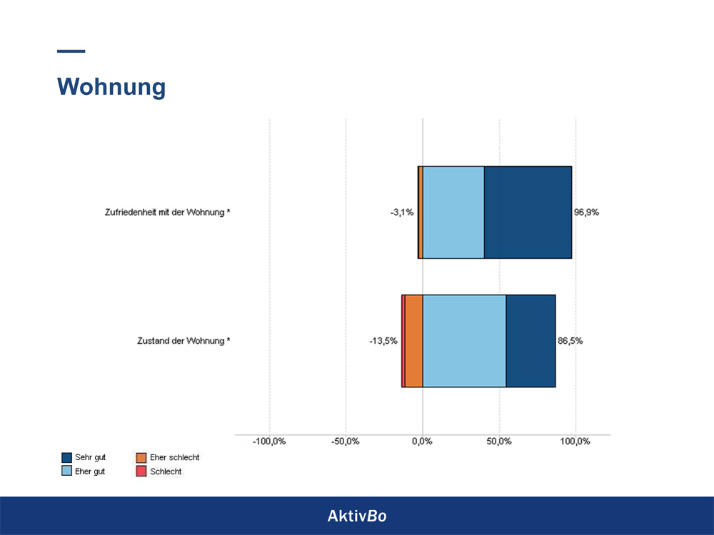 – Sehr hohe Zufriedenheit: 96,9 % der Mieter sind mit ihrer Wohnung sehr zufrieden. Das ist das wichtigste – für die Mieter und für uns als Hausverwalter und Vermieter.